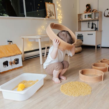 L'activité de transvasement est le fait de transférer des matériaux d'un réceptacle à un autre. Cette pratique est particulièrement courante chez les jeunes enfants et peut impliquer divers matériaux tels que le riz, l'eau, le sable, ou encore des petites billes. Ces matériaux sont souvent choisis non seulement pour leur texture et leur poids, mais aussi pour leur capacité à stimuler les sens et encourager l'exploration.