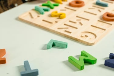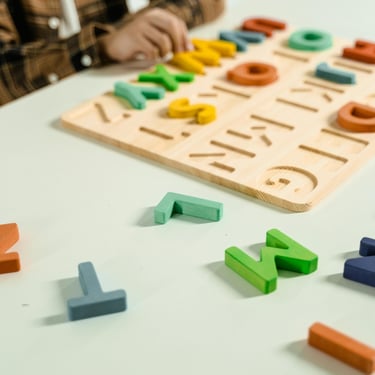 Certains cubes en bois sont ornés de lettres, de chiffres ou de formes. Ils deviennent alors un outil ludique pour apprendre l’alphabet, compter ou reconnaître des couleurs et des motifs.