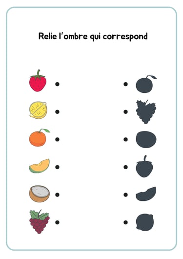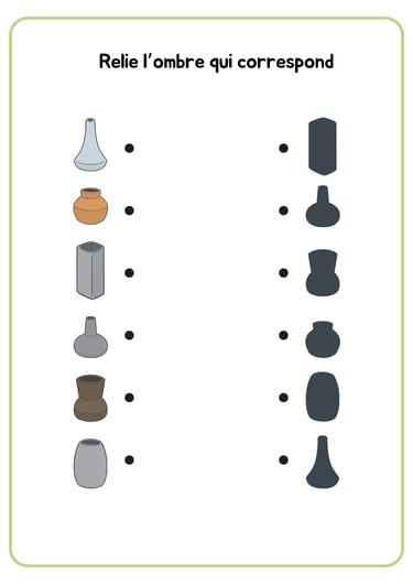 L'exercice de relier les ombres à des objets est une activité éducative essentielle pour les enfants, car il favorise leur développement cognitif et leur compréhension du monde qui les entoure. Cette activité stimule leur imagination et leur créativité, tout en les aidant à affiner leurs compétences en observation. En apprenant à associer une ombre à son objet source, les enfants développent leur capacité à reconnaître des formes, des tailles et des proportions. Cela leur permet également de se familiariser avec la notion de lumière et d'ombre, améliorant ainsi leur compréhension des concepts visuels. De plus, cet exercice peut renforcer leur concentration et leur précision, tout en rendant l'apprentissage ludique et interactif. En somme, relier des ombres à des objets est une approche amusante et pédagogique qui enrichit l'expérience d'apprentissage des enfants.