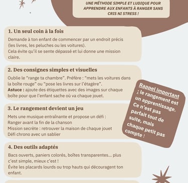 Chaque enfant est unique, et il n’existe pas une seule "bonne méthode". L’important est de trouver ce qui motive le vôtre et de transformer le rangement en moment agréable plutôt qu’en source de conflit.